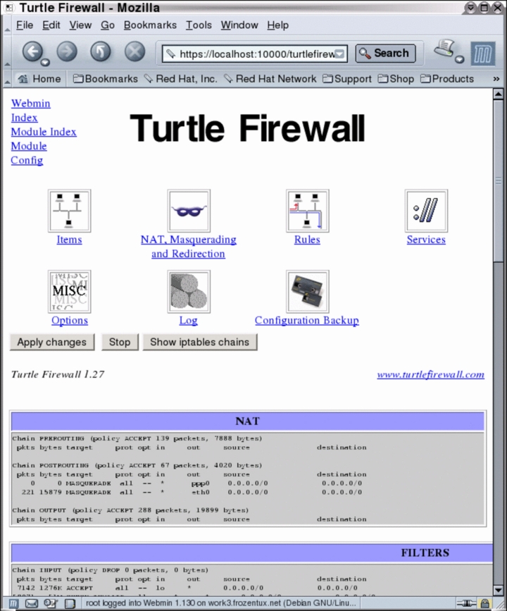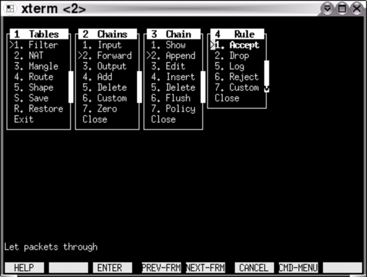 This document was written to guide you through the setup process step by step and hopefully help you to understand some more about the iptables package. I have based most of the stuff here on the example rc.firewall file, since I found that example to be a good way to learn how to use iptables. I decided to just follow the basic chain structure and from there walk through each and one of the chains traversed and explain how the script works. That way the tutorial is a little bit harder to follow, though this way is more logical. Whenever you find something that's hard to understand, just come back to this tutorial.